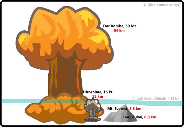 cogumelo produzida pela detonação chegou a 60 mil metros de altura, e o